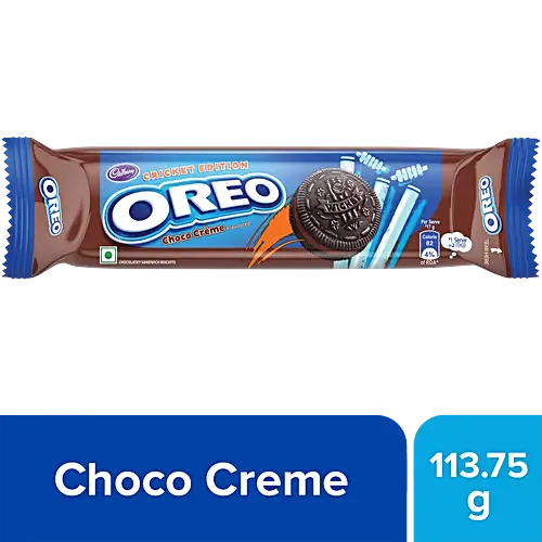 Oreo: milk’s best friend for over 100 years! Cadbury Oreo Chocolate crème sandwich biscuit consists of two chocolatey biscuits with a rich chocolate crème filling between them. Cadbury Oreo crème biscuits are made with cocoa, which defines their unique chocolatey flavour. Add this crunchy delight to your snacks and gift yourself rich and smooth joy. Oreo biscuits are perfect for snacking or enjoying as a treat at any time of the day. Twist, lick and dunk! Enjoy Oreo sandwich cookies with a glass of milk or add them to your favourite recipes such as cakes and milkshakes! Add a scoop of vanilla ice cream to Oreo biscuits to make your own creamy dessert! Available in single & family/combo packs. This biscuit pack is suitable for vegetarians.