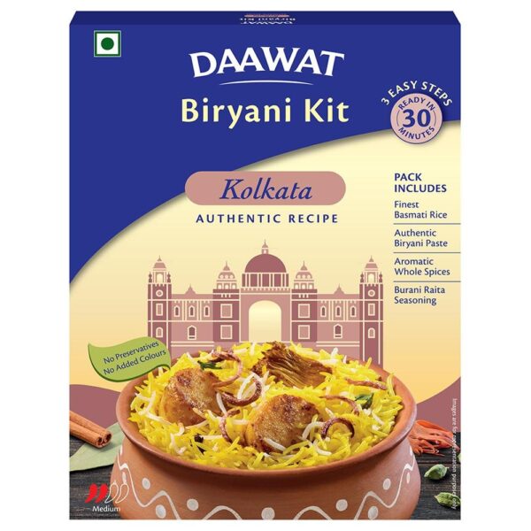Sourced from the royal kitchens of Nizams, this recipe has been curated to give you an authentic Kolkata Biryani Kit experience. In this kit, you will find the best quality basmati rice for Biryani, an authentic Kolkata Biryani Masala Paste made with secret ingredients and aromatic whole spices, all ready to be cooked. Enjoy delicious cooking with Daawat Kolkata Biryani Kit and buy it online now!