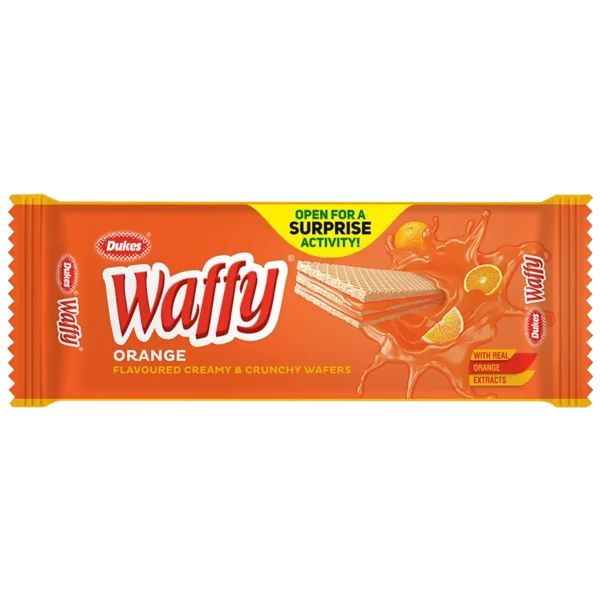 Dukes Waffy Wafers in Orange flavour offer a delightful blend of creamy and crunchy textures. These wafer biscuits are loved for their zesty orange flavour, complemented by a smooth cream filling sandwiched between crispy layers. Perfect for snacking or as a sweet treat, Dukes Waffy Wafers promise a burst of citrusy goodness in every bite. Individually packed for freshness, they are convenient for on-the-go enjoyment or sharing with friends and family. Experience the joy of Dukes Waffy Wafers – Orange Flavoured, where each wafer delivers a harmonious balance of flavour and texture, making it a favourite snack choice.