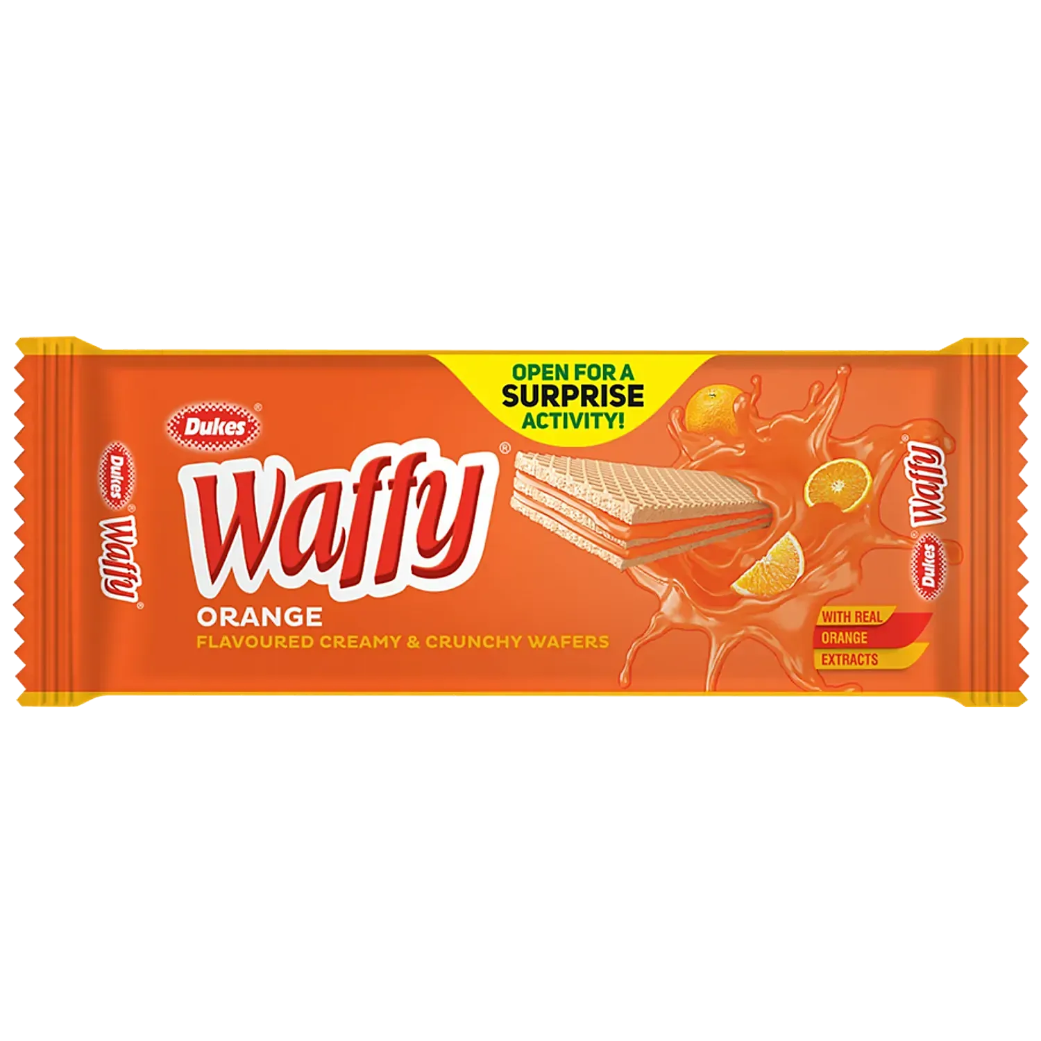 Dukes Waffy Wafers in Orange flavour offer a delightful blend of creamy and crunchy textures. These wafer biscuits are loved for their zesty orange flavour, complemented by a smooth cream filling sandwiched between crispy layers. Perfect for snacking or as a sweet treat, Dukes Waffy Wafers promise a burst of citrusy goodness in every bite. Individually packed for freshness, they are convenient for on-the-go enjoyment or sharing with friends and family. Experience the joy of Dukes Waffy Wafers – Orange Flavoured, where each wafer delivers a harmonious balance of flavour and texture, making it a favourite snack choice.