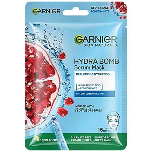 Garnier Skin Naturals Hydra Bomb Face Serum Sheet Mask – Hyaluronic Acid & Pomegranate – 28g