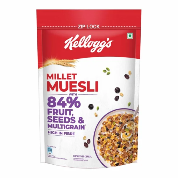 – Millet Power for a Nourishing Start: Fuel your day with the ancient grain goodness of 5 baked grains – Ragi, Barley, Wheat, Corn & Rice, packed in Kellogg’s Millet Muesli. It’s the perfect breakfast to kickstart your day with sustained energy and essential nutrients.