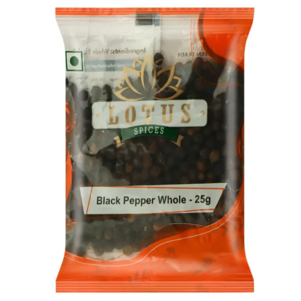 Pepper has a distinct, strong, and aromatic taste of its own. Black Pepper along with stemless chilli, mustard seeds, and onions, is used in sauteing and tempering dals and vegetable dishes. Use Lotus Spices Black Pepper to bring a flavourful twist to your meals. Buy this product online today.